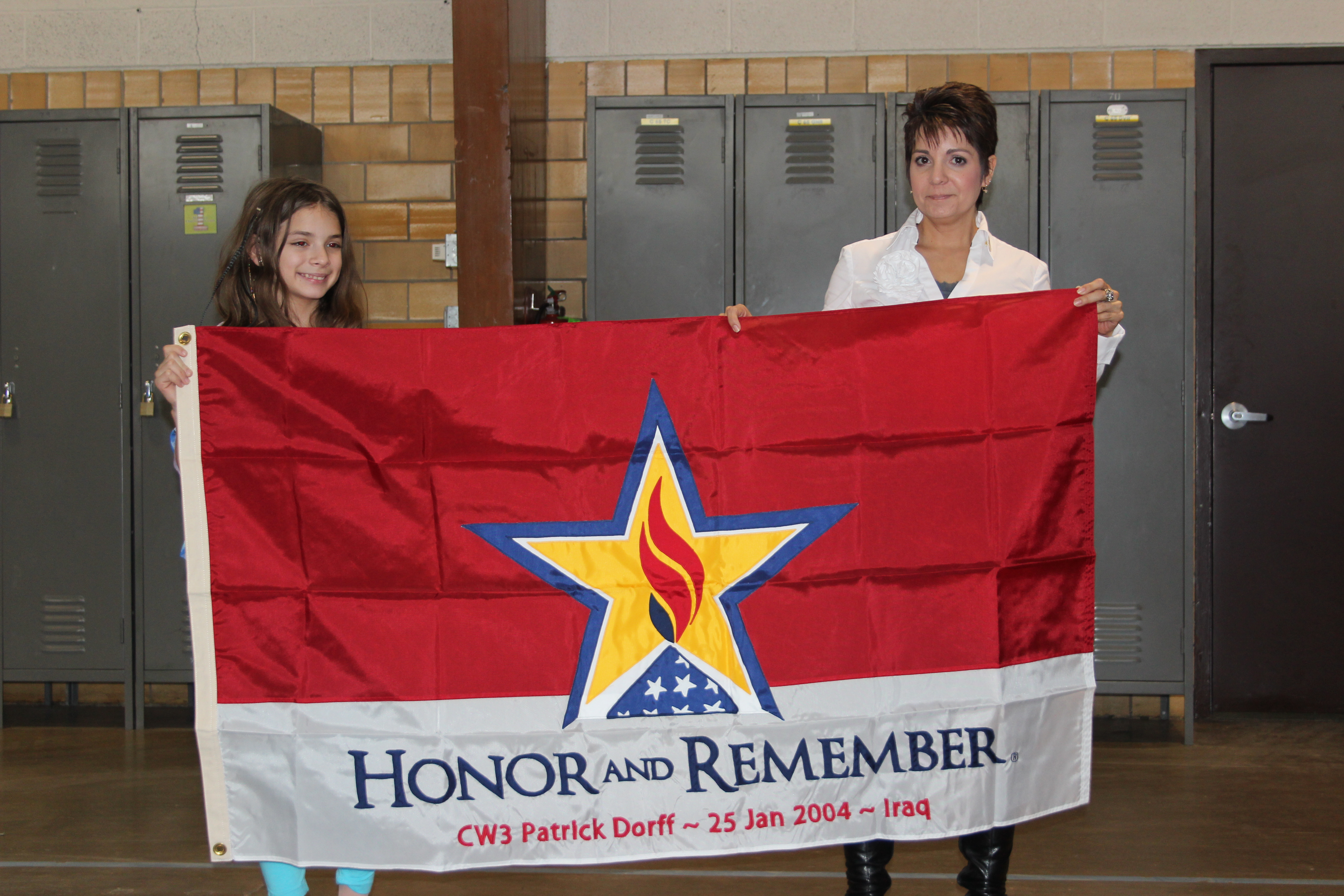 Honor and Remember flag presented to Jamie (wife) and Brisa (daughter) on 2/11/12 at the Grand Rapids MN National Guard Armory.