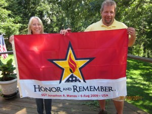 Scott and Peg Manea were presented an Honor and Remember flag for their son, Jonathon, at their home on 8/28/11.